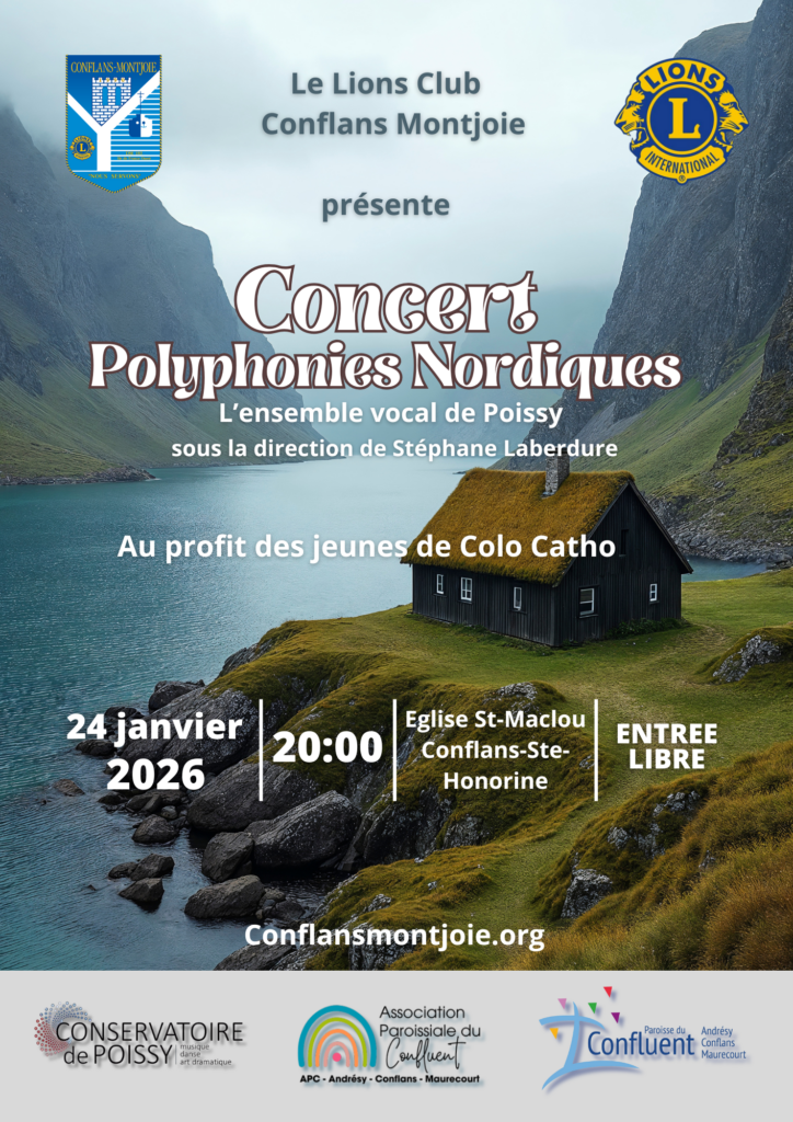 - Le samedi 24 janvier à 20 heures à l’Eglise Saint Maclou de Conflans-Sainte-Honorine, nous recevrons l’ensemble vocale de Poissy avec un programme de Polyphonies Nordique ; sous la direction de Stéphane Laberdure.