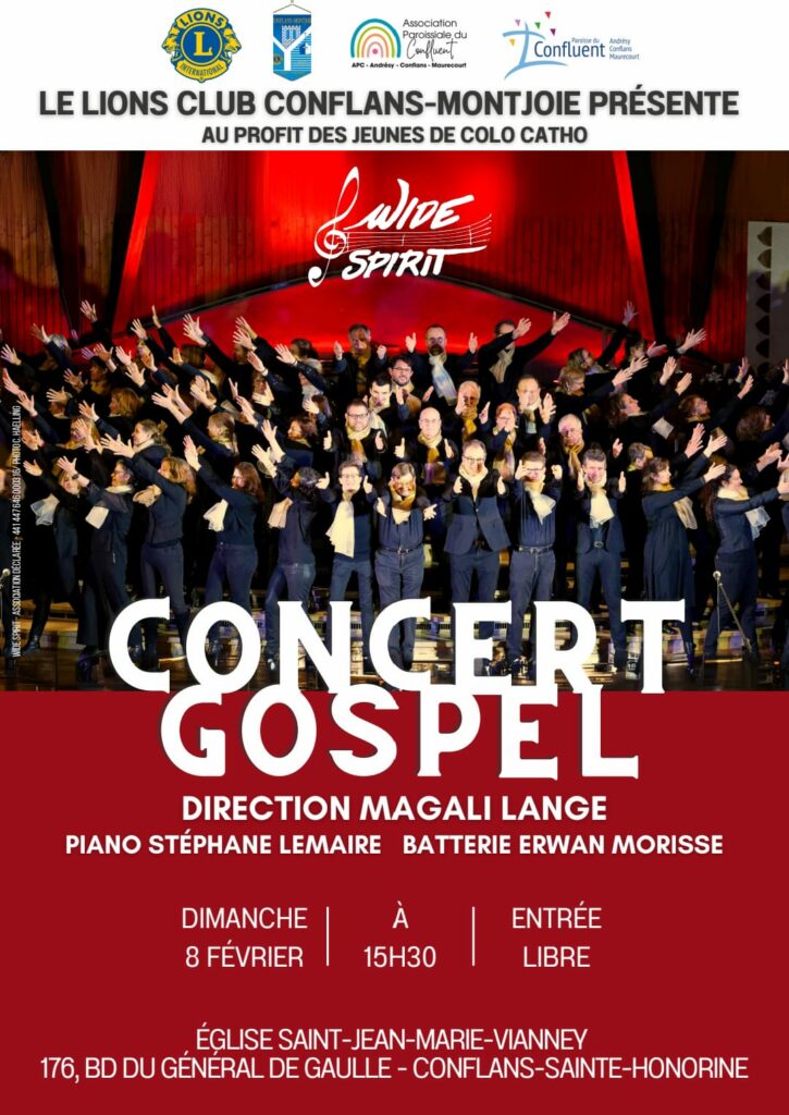 - Le dimanche 8 février, à 15h30, l’église Saint Jean-Marie Vianney accueillera la chorale Wide Spirit pour un concert gospel. Au programme : un répertoire mêlant grands classiques et titres contemporains porté par des voies puissantes et une énergie communicative.